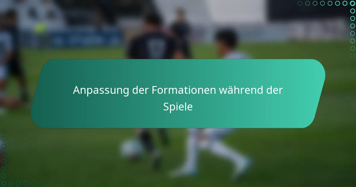 Teams passen Formationen während der Spiele an, um auf sich ändernde Dynamiken, wie die Strategien der Gegner oder die Leistung der Spieler, zu reagieren. Flexibilität ist entscheidend, um einen Wettbewerbsvorteil aufrechtzuerhalten und ein effektives Spiel zu gewährleisten.