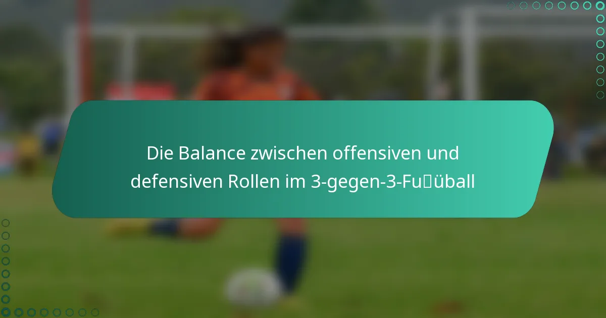 Im 3-gegen-3-Fußball ist es entscheidend, ein Gleichgewicht zwischen offensiven und defensiven Rollen für eine erfolgreiche Teamstrategie zu erreichen. Offensive Spieler zielen darauf ab, Tore zu erzielen und Chancen zu kreieren, während defensive Spieler sich darauf konzentrieren, die Versuche des gegnerischen Teams, zu scoren, zu vereiteln. Durch die Nutzung individueller Stärken und die Aufrechterhaltung klarer Kommunikation können Teams ihre Taktiken anpassen, um die Gesamtleistung und den Zusammenhalt auf dem Feld zu verbessern.